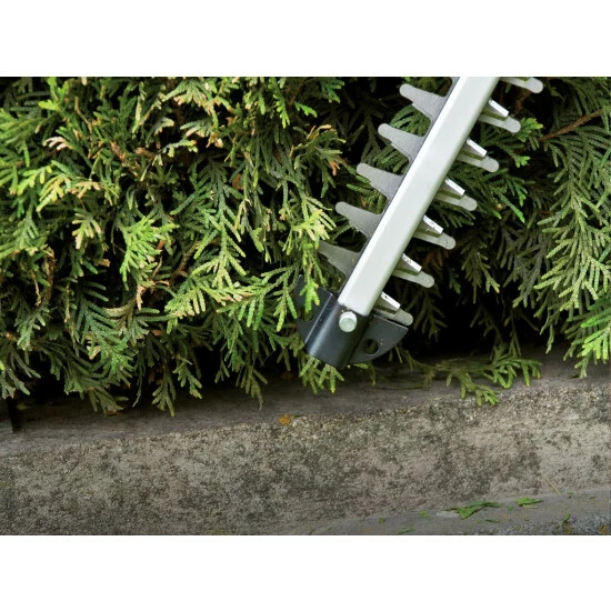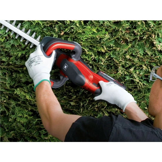 Die Akku-Heckenschere GE-CH 1846 Li ist ein leistungsstarkes Gerät, das aufgrund seines geringen Gewichts und der handlichen Größe eine besonders komfortable und stromnetzunabhängige Pflege von Hecken, Sträuchern und Büschen auf großen Grundstücken und in Schrebergärten ermöglicht. Dabei sorgt das Metallgetriebe für hohe Langlebigkeit und die aus lasergeschnittenem und diamantgeschliffenem Stahl gefertigten Messer für saubere Schnittresultate. Der integrierte Zweihand-Sicherheitsschalter bringt die Messer bei Loslassen eines Schalters in weniger als 1 Sekunde zum Stillstand. Die Messer werden durch eine Messerabdeckung aus Aluminium geschützt. Der Stoßschutz ist mit einer Bohrung für die Wandbefestigung versehen, wodurch die Heckenschere im Handumdrehen platzsparend verstaut ist. Im stabilen Köcher lässt sich die GE-CH 1846 Li sicher und bequem transportieren oder verstauen.