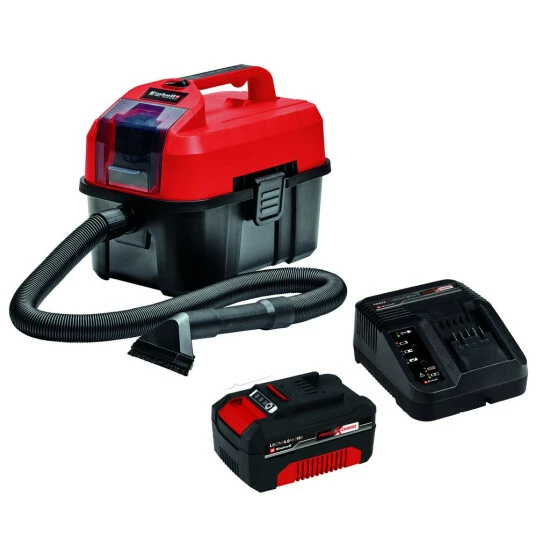 Der Einhell Akku-Nass-Trockensauger TE-VC 18/10 Li-4 Ah beseitigt kabellos und ungebunden Staub, Schmutz und sogar Flüssigkeiten – ob in Heim, Werkstatt, in Keller oder Garage. Der multifunktionelle Mehrzwecksauger gehört zur pfiffigen Power X-Change-Familie. Alle Akkus der Systemreihe können untereinander ausgetauscht werden – bei allen PXC-Geräten. Der Auffangbehälter hat ein Volumen von zehn Litern und damit Platz auch für ausdauernde Einsätze. Dabei machen die ergonomische Bauform und der Tragegriff für einen einfachen Transport den Einsatz anwenderfreundlich. Ob auf Fliesen, Teppich oder anderen Böden, der Sauger ist vielfältig einsetzbar, ob fürs Nass- oder Trockensaugen, beides ist möglich. Der Blasanschluss dient zum Ausblasen schwer zugänglicher Stellen.