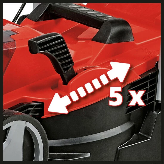 Der Einhell Akku-Rasenmäher GE-CM 18/33 Li (2×4,0Ah) ist Mitglied der flexiblen und leistungsstarken Power X-Change-Familie und wird empfohlen bis zu einer Fläche von 200 m². Der Akku-Mäher wird mit einem 18 Volt 4,0 Ah-Akku der anwenderfreundlichen PXC-Systemreihe betrieben. Ein Akku und ein Ladegerät sind in der Lieferung inklusive. Die Akkus verfügen über 3 LEDs als Füllstandsanzeige und können mit allen weiteren Geräten der Systemreihe kombiniert werden. Angetrieben wird der starke Akku-Mäher durch einen Einhell Brushless Motor, einen bürstenlosen Elektromotor mit längerer Laufzeit und Lebensdauer als herkömmliche Kohlebürsten-Motoren. Der Highwheeler mit großen, rasenschonenden Rädern verfügt über eine 5-stufige zentrale Schnitthöhenverstellung sowie einen 3-fach höhenverstellbaren und klappbaren Führungsholm für die bequeme Bedienung und einen großzügig bemessenen Grasfangkorb mit Füllstandsanzeige. Der Mäher ist mit einem hochwertigen, schlagzähen Kunststoffgehäuse und überdies mit einem integrierten Tragegriff ausgerüstet, mit dem sich dieser einfach transportieren lässt.