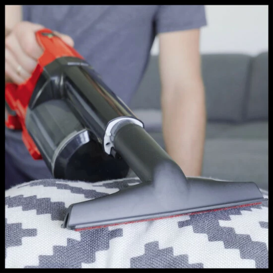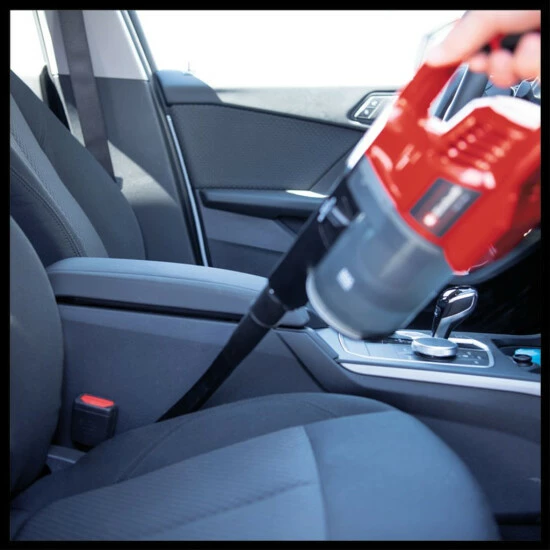 Der Einhell Akku-Stielstaubsauger TE-SV 18 Li-2,5 Ah Akku ist Teil des multifunktionalen und grenzenlos untereinander kombinierbaren Einhell Power X-Change Akkusystems. Zur Nutzung des Akku-Stielstaubsauger wird ein 18V Akku benötigt. Ununterbrochenes Arbeiten ohne Kabel: Das ermöglichen das Power X-Change Wechselakku-System und die Schnellladetechnologie. Ist der eingesetzte Akku leer, kann er einfach gegen einen vollgeladenen getauscht werden. Je nach Akku können zudem sehr lange Laufzeiten erreicht werden, denn zum Beispiel der 6 Ah Akku liefert dem Staubsauger im ECO-Modus bis zu 80 Minuten lang Energie. Die vier Spotlight LEDs und ein um zwei Achsen bewegbares Gelenk an der Bodendüse ermöglichen eine einfache Reinigung, auch von dunklen und schwer erreichbaren Stellen wie zum Beispiel unter einem Bett oder Schrank. Die gummibereiften Räder sind leise und schonen empfindliche Bodenbeläge wie Parkettböden. Dank der kompakten und leichten Bauform liegt der Akku-Staubsauger auch bei längeren Arbeiten ermüdungsfrei und bequem in der Hand. So wird Staubsaugen zum echten Kinderspiel. Das effiziente 3-fach Filtersystem bestehend aus einem Vorfilter, einem wechsel- und waschbaren Faltenfilter und einem Motorfilter und der integrierte Zyklonabscheider sorgen für saubere Ausblasluft und effizientes Saugen mit hoher Saugkraft. Der Schmutzfangbehälter wird ganz einfach per Knopfdruck entleert, ein extra Beutel wird nicht benötigt. Das schont die Umwelt, spart Geld und ist zugleich sehr hygienisch, da der Nutzer nicht mit dem Schmutz in Kontakt kommt. Durch zwei einstellbare Saugleistungen kann der Staubsauger an jede Situation angepasst werden. Der ECO-Modus kann bei normalen Verschmutzungen und für maximale Laufzeit verwendet werden, der BOOST-Modus sorgt hingegen für maximale Saugleistung bei hartnäckigen Verschmutzungen, wie beispielsweise auf Teppichen. Dank der Kombination zweier Bauformen ist der Akku-Staubsauger ein praktisches 2-in-1 Gerät. Er kann sowohl klein und leicht als Handstaubsauger benutzt werden, als auch zur Bodenreinigung, wobei er als Stielstaubsauger mit perfektem Handling beeindruckt. Die motorisierte Bodendüse wurde entwickelt, um Staub und hartnäckigen Schmutz sowohl vom Hartboden, als auch von Teppichböden und aus Teppichen zu entfernen. Die Bürste lässt sich zudem einfach lösen und bequem reinigen. In der Lieferung enthalten ist eine Wandhalterung, welche Platz für die Lagerung des Staubsaugers und des Zubehörs bietet, sodass alles sauber verstaut, aber zu jeder Zeit griffbereit ist. Die mitgelieferte flexible Fugendüse ist ideal geeignet, um an schwer erreichbaren Stellen zu saugen, beispielsweise zwischen den Sitzen im Auto. Ein einmaliges Betätigen des Einschalters reicht aus, damit der Staubsauger durchgehend läuft. Der Einschaltknopf muss nicht dauerhaft gedrückt werden.