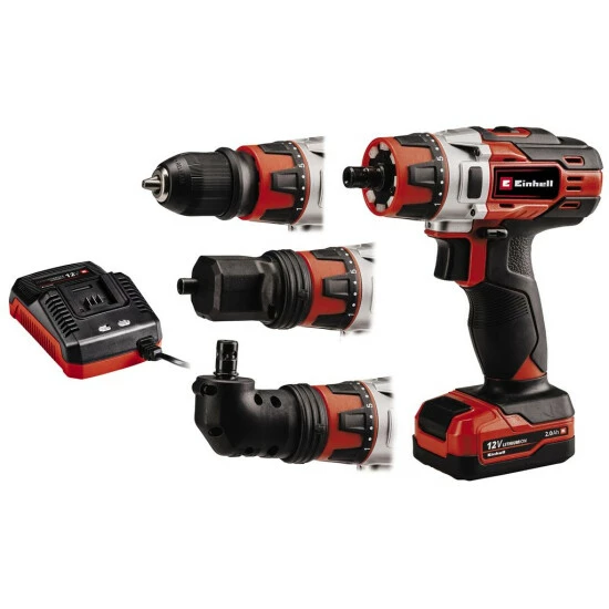 Der Einhell 12 V Akku-Bohrschrauber TE-CD 12/1 3X-Li macht’s möglich: Krafvolles Schrauben und schnelles Bohren in Holz und Metall ermöglicht das 2-Gang-Getriebe. Die LED-Beleuchtung bringt optimale Einsicht in dunkle Bereiche. Maximale Flexibilität beim Arbeiten erlaubt das abnehmbare 10 Millimeter Bohrfutter. Der mitgelieferte Winkelaufsatz ermöglicht das Schrauben und Bohren an Stellen, die für den Akku-Bohrschrauber sonst zu eng wären. Ebenso ist ein Exzenteraufsatz im Lieferumfang, mit dem auch an randnahen Stellen und in Ecken sauber gearbeitet werden kann. In 45 Minuten sorgt das Ladegerät für Einsatzbereitschaft des 2,0 Ah-Akkus.