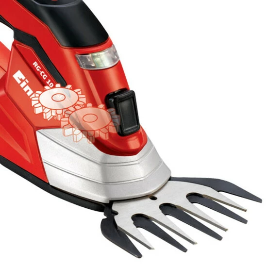 Vielseitig einsetzbare Akku Gras- und Strauchschere. Im Lieferumfang enthalten ist ein Teleskopstiel für bequemes Arbeiten ohne Bücken mit zusätzlicher Drehfunktion ideal zum Arbeiten in der Vertikalen. Die akkubetriebene Gras- und Strauchschere RG-CG 10,8 Li ist ein hochwertiges, praktisches Gerät, mit der die Pflege von Rasenkanten, Büschen und Sträuchern spielend leicht von der Hand geht. Ihr bequem mit einer Hand bedienbarer Sicherheitsschalter am Handgriff verhindert unbeabsichtigtes Einschalten. Für optimale Kraftübertragung sorgt ein robustes Metall-Getriebe. Die hochwertigen, langlebigen Messer der RG-CG 10,8 Li sind lasergeschnitten, erzielen sehr gute Schnittresultate und lassen sich mit wenigen Handgriffen werkzeuglos wechseln. Das Gerät ist mit einem Grasschneideblatt und einem Strauchscherenmesser ausgestattet. Dank Teleskopstiel mit großen Laufrädern lässt sich die Grasschere mühelos und in aufrechter Körperhaltung führen. Dank Softgrip liegt sie angenehm griffig in der Hand.