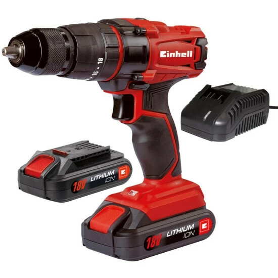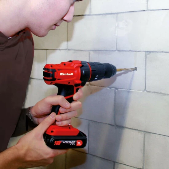 Das Eindrehen von großen und langen Schrauben ist mit dem Schlagschrauber TC-CD 18-2 Li-i von Einhell ein müheloses Unterfangen. Er liefert ein maximales Drehmoment von 40 Nm. Dank des Lithium-Ionen-Akkumulators ist diese Bohrmaschine sehr handlich, leicht und praktisch. Das integrierte LED-Licht ermöglicht jederzeit beste Sicht auf den Arbeitsbereich. Der TC-CD 18-2 Li-i Akku-Schlagbohrschrauber ist mit einem einhülsigen 13 mm Schnellspannbohrfutter mit Quick-Stop ausgestattet. Der TC-CD 18-2 Li-i wird inklusive 2 1,5 Ah Akkus, 1-Stunden Schnellladegerät und einem praktischen Transport- und Aufbewahrungskoffer geliefert.