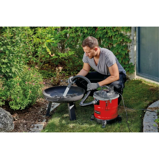 Mit dem Einhell Aschesauger TC-AV 1620 DW ist die Beseitigung von Asche eine praktische und bequeme Angelegenheit. Der 20 Liter große Auffangbehälter ist üppig konzipiert und ermöglicht dadurch ein langes Arbeiten. So wird der Anwender der Asche im Ofen und Kamin ebenso Herr wie den Rückständen im Grill. Ein praktischer Tragegriff sorgt dabei für den einfachen Transport. Durch seine vier Rollen ist der Aschesauger zudem mobil und flexibel einsetzbar. Dank seines metallverstärkten Saugschlauches (Durchmesser 36 Millimeter – Länge 1,2 Meter) und dem Aluminiumsaugrohr ist er stabil konzipiert. Fein- und Aschestaub haben keine Chance, in die Umgebung zu gelangen, dafür sorgt der integrierte Faltenfilter. Der zusätzliche Vorfilter ermöglicht eine bessere Filtration. Er verhindert damit auch eine schnelle Verstopfung des Hauptfilters. Der Schlauch kann im Handumdrehen auf den Luftablass umgesteckt werden, womit die Blasfunktion des Gerätes genutzt werden kann. Dank der Schnellverschlüsse lässt sich der Auffangbehälter einfach und schnell entleeren. Das Stromkabel kann am Griff aufgewickelt werden, womit das Gerät schnell und praktisch verstaut werden kann.