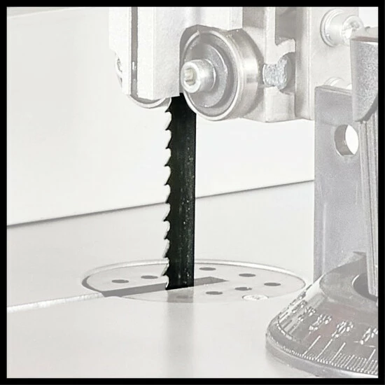 Die Einhell Bandsäge TC-SB 245 L ist die ideale, 400 Watt starke Basismaschine für ambitionierte Hobbyheimwerker. Die Bandsäge verfügt über eine werkzeuglose Höhenverstellung, mehrfach verstellbare Kugellagerführungen, einen 36 mm-Anschluss für einen Absauger und ein integriertes Licht zum Ausleuchten des Tisches. Der Sägetisch ist von 0° bis 45° stufenlos verstellbar, der Bandlauf kann über die obere Rolle justiert werden. Der doppelt fixierte Parallelanschlag ist mit einer Schnelljustierung für gerade Schnitte ausgerüstet. Der Winkelanschlag ist von -60° Grad bis +60° Grad stufenlos verstellbar. In der Lieferung enthalten ist ein Schiebestock. Der Nullspannungsschalter schützt bei plötzlichen Stromunterbrechungen im Einsatz.