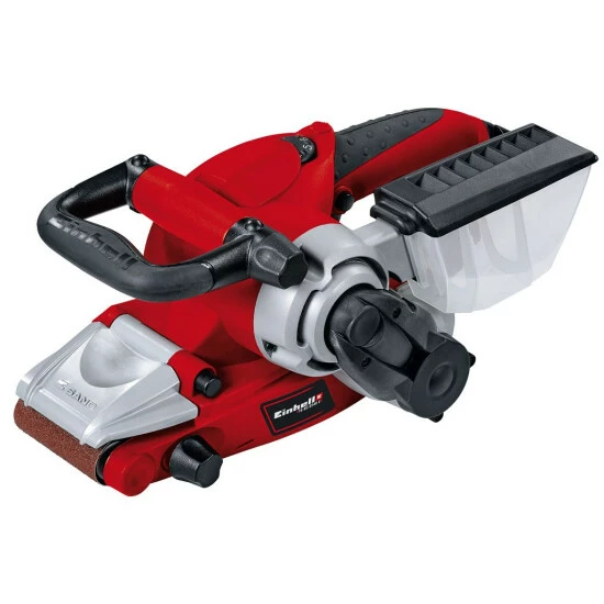 Mit dem Einhell Bandschleifer TE-BS 8540 E haben ambitionierte Heimwerker ein hochwertiges und leistungsstarkes Gerät zur Hand, das einfach und flexibel einsetzbar ist. Die Drehzahl-Elektronik passt sich an Material und Anwendung an. Die klappbare Frontabdeckung ermöglicht randnahes Schleifen. Der Bandlauf lässt sich mithilfe der Feinjustierung optimal einstellen. Dank Arretierhebel sind Schleifbänder im Nu gewechselt, der Zusatzhandgriff ist werkzeuglos verstellbar. Sicheres und ermüdungsfreies Arbeiten erlaubt der Softgrip. Für einen sauberen Arbeitsplatz sorgt die integrierte sowie ein Adapter für eine externe Staubabsaugung. Der Kabelclip fixiert das aufgewickelte Kabel. Zum Lieferumfang gehört ein Schleifband (P80).