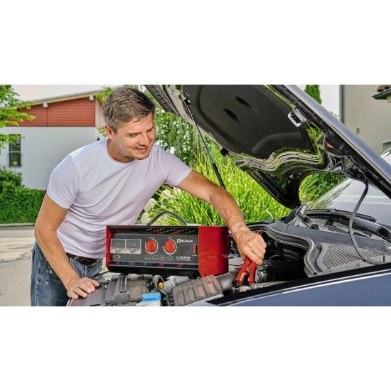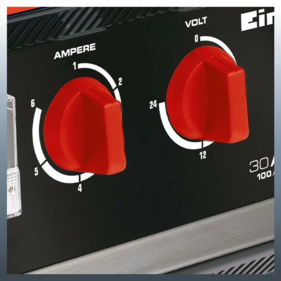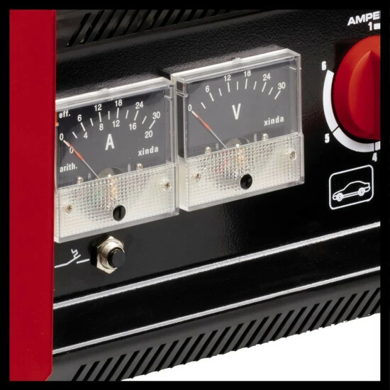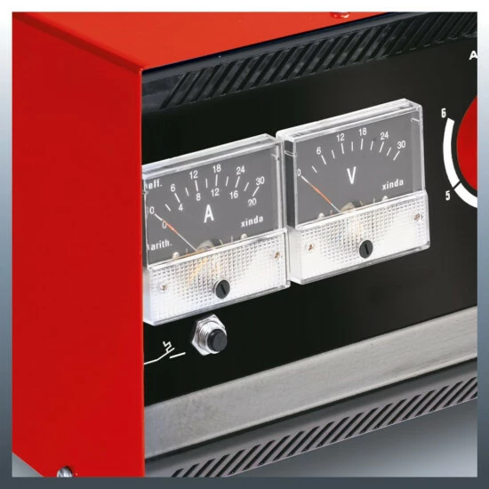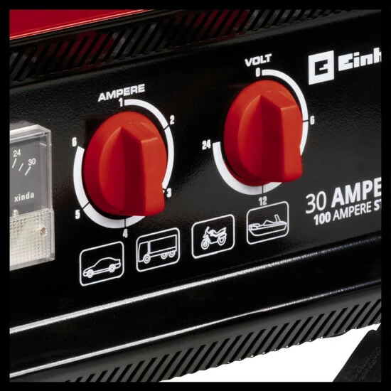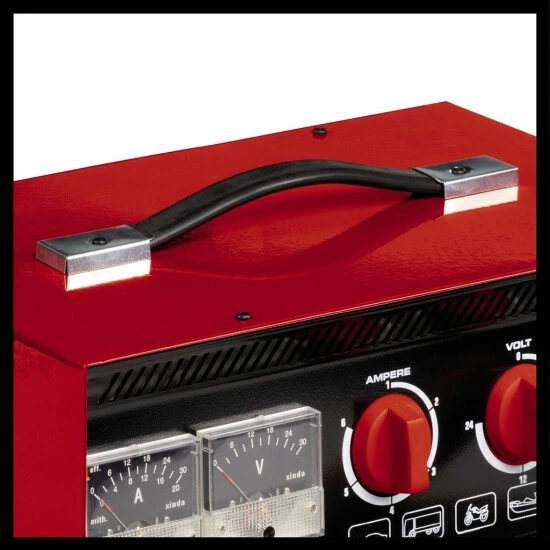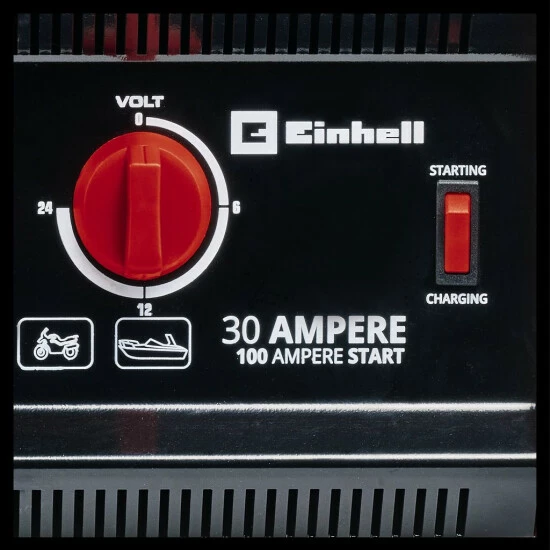 Das Einhell CC-BC 30 Ladegerät ist ein leistungsstarkes und robustes Ladegerät für Werkstätten mit einer wählbaren Ladespannung von 6 V / 12 V / 24 V und einer Starthilfefunktion. Es eignet sich hervorragend für Werkstätten, landwirtschaftliche Zwecke und Nutzfahrzeuge. Die Ladegeschwindigkeit ist in 6 Stufen einstellbar und die Starthilfefunktion (100 A / 5 s) lässt sich problemlos über ein Fernstartkabel (3 m lang) mit Wippschalter bedienen. Die aktuelle Ladegeschwindigkeit sowie die Ladespannung können von den beiden großen Anzeigelehren abgelesen werden, so dass Sie den Ladevorgang kontrollieren können. Die starken und vollisolierten Anschlussklemmen ermöglichen einen optimalen Kontakt zu den Batterieklemmen. Zusätzlich ist das Gerät mit einem 2-fachen Verpolungs- und Überlastschutz ausgestattet und verfügt über ein kratzfestes, pulverbeschichtetes Stahlblechgehäuse mit einem stabilen Griff.