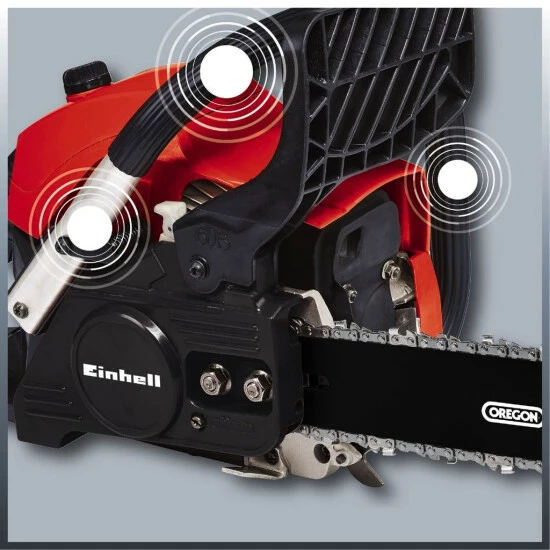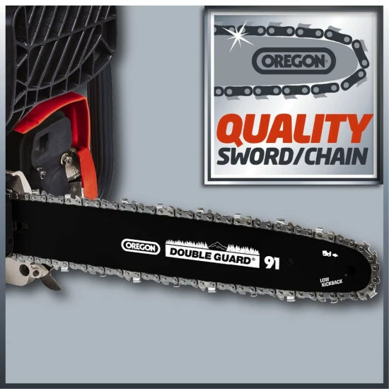 Die Einhell Benzin-Kettensäge GC-PC 1235 I ist eine leistungsstarke Kombination einer Einhell Benzin-Kettensäge mit der Schärfe eines Oregon-s. Ausgerüstet mit einem Oregon-Schwert mit -kette, steht der Heim- und Gartenarbeit nichts mehr im Weg. Zweige und Äste sowie Kanthölzer, Werkstücke und Brennholz haben der Benzin-Kettensäge kaum etwas entgegenzusetzen. Einfach und sicher lässt sich die Benzin-Kettensäge durch eine Reihe technischer Unterstützungsfunktionen handhaben.
