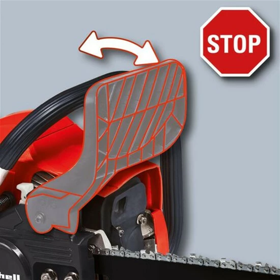 – Sicherheit durch Rückschlagschutz mit Sofort-Kettenbremse, Kettenfänger schützt vor Abspringen der Kette.