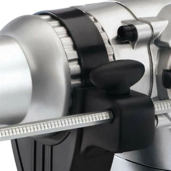 - Verdrehsicherung durch Verippung am Zusatzhandgriff und stabiler Tiefenanschlag aus Metall für exakte Serienbohrungen