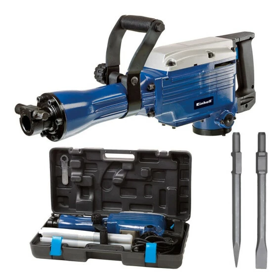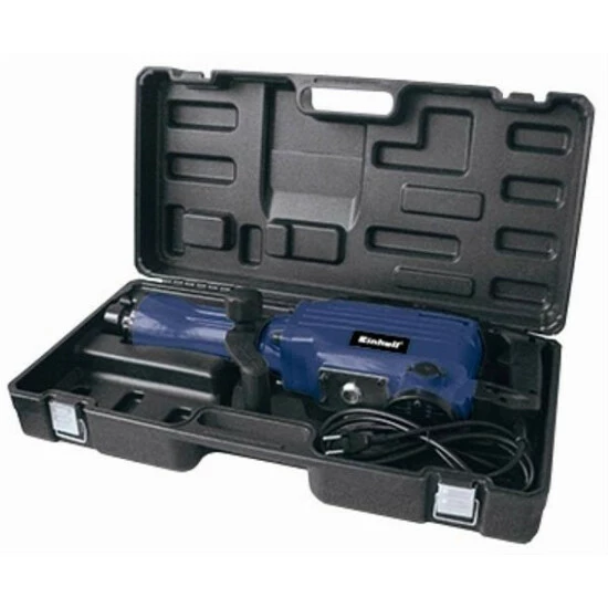 Einhell BT-DH 1600/1 Abbruchhammer 1600Watt Ausstattung Sechskant-Aufnahme, 30 mm (1) Zusatzhandgriff (2) Flachmeißel (L = 400 mm, B = 30 mm) (3) Spitzmeißel (L = 400 mm) (4) Transport- und Aufbewahrungskoffer aus Kunststoff (5) Technische Daten Netzanschluss: 230 V 50 Hz Aufnahmeleistung: 1.600 Watt Schlagzahl / Schlagstärke: 1.500 min-1 / 43 J Produktgewicht: 14,7 kg