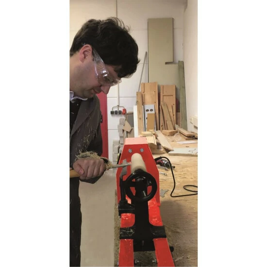 Mit der Drechselbank TC-WW 1000 lassen sich vielfältige hochwertige Drechselarbeiten wie Säulen, Schalen oder Ringe präzise und sicher ausführen. Durch den geteilten Führungsrahmen kann die Drechselmaschine einfach auf eine vorhandene Werkbank montiert werden. Der laufruhige 350-Watt-Motor und der langlebige, 4-fach verstellbare Keilriemenantrieb ermöglichen eine optimale Anpassung der Drechselgeschwindigkeit an das Material des Drechselgutes. Der Stirnmitnehmer und der Reitstock mit mitlaufender Spindelspitze nehmen lange Werkstücke bis 1000 mm sicher auf und an der mitgelieferten Planscheibe können plane Werkstücke mit einem Durchmesser bis 356 mm sicher montiert werden. Die stabile Werkzeugauflage und der robuste Führungsrahmen sorgen jederzeit für die beste Handhabung der Drechseleisen. Für eine sichere Bedienung sorgt ein Sicherheitsschalter im Keilriemengehäuse, der beim Öffnen der Gehäuseklappe die Stromversorgung unterbricht.