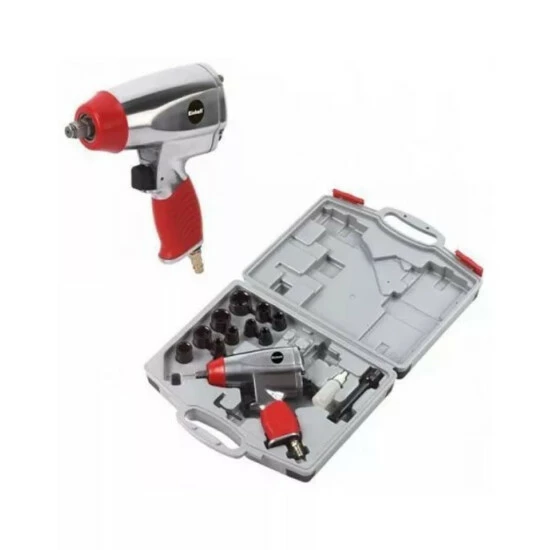 Der leistungsstarke pneumatische Druckluft-Schlagschrauber DSS 260/2 erweist sich besonders beim schnellen Wechsel von Autoreifen als unentbehrlicher Helfer. Ferner bietet er mit einem hohen Lösedrehmoment und vierfach einstellbarem Schlagmoment für Rechts- und Linkslauf viele weitere Einsatzmöglichkeiten in Haus, Garage und Werkstatt. Sein stabiles Aluminium-Druckgussgehäuse verleiht ihm eine hohe Lebensdauer. Dank elfteiligem Steckschlüssel-Set (SW: 9; 10; 11; 13; 14; 17; 19; 22; 24; 27 mm) ist das Gerät sofort startklar. Der vibrationsgedämpfte, rutschsichere Handgriff des DSS 260/2 liegt perfekt in der Hand und sorgt für angenehmes, ergonomisches Arbeiten. Neben dem Steckschlüssel-Set ist das Gerät mit einem Stecknippel für den Luftanschluss, sowie einer Ölflasche ausgestattet. Im praktischen Transport- und Aufbewahrungskoffer ist der DSS 260/2 mit Zubehör sicher, ordentlich und einsatzbereit verstaut.