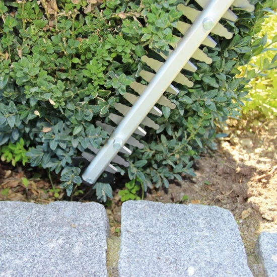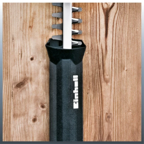 Mit der Elektro-Heckenschere GE-EH 6560 von Einhell ist der Zuschnitt von Hecken, Sträuchern und Gebüsch ein Leichtes. Mit einer Schnittlänge von 600 Millimeter ist sie ein hochwertiger und kraftvoller Helfer, gelingt doch dank der 650 Watt Leistung der Schnitt zuverlässig und in der gewünschten Form. Die Einhell Elektro-Heckenschere GE-EH 6560 liefert 3000 Schnitte in der Minute bei einem Zahnabstand von 30 Millimeter. Die Messer aus lasergeschnittenem und diamantgeschliffenem Stahl sind auf Präzision und Langlebigkeit ausgelegt. Für eine hohe Lebensdauer ist die Heckenschere mit einem Metallgetriebe ausgestattet. Der Zusatzhandgriff sorgt für optimale Ergonomie und sicheren und kraftvollen Halt in jedem Schneidwinkel. Der hintere Handgriff ist drehbar und ermöglicht so ermüdungsfreies Arbeiten. Zusätzliche Sicherheit bietet der Zwei-Hand-Sicherheitsschalter für einen Messerstopp unter einer Sekunde. Die Einhell Elektro-Heckenschere GE-EH 6560 ist zudem mit einem großflächigen Handschutz und einer Alu-Messerabdeckung ausgestattet. Die Kabelzugentlastung dient ebenfalls der sicheren Bedienbarkeit. Für optimale Lagerung und Transport wird für die Heckenschere ein stabiler Köcher mitgeliefert. Dank des praktischen Schnittgutsammlers lässt sich beim Schneiden der Hecke das Schneidgut perfekt von der Heckenoberseite abtragen.