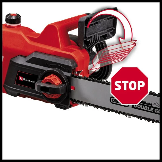 Die Elektro-Kettensäge GC-EC 2040 ist ein handliches und leistungsstarkes Gerät, das sich beim Sägen von Brennholz, beim Auslichten und beim Fällen kleinerer Bäume als zuverlässiger Helfer erweist. Qualitätsschwert und -kette von OREGON sorgen für optimale Schnittleistung. Die Kette lässt sich werkzeuglos spannen und wechseln. Das hochwertige, robuste Metall-Getriebe sorgt für gute Kraftübertragung und hohe Lebensdauer. Die GC-EC 2040 ist mit einem Rückschlagschutz mit mechanischer Sofort-Kettenbremse ausgestattet, der bei Hochschlagen der Säge für sofortigen Stillstand der Kette sorgt. Der Ölstand im Ölbehälter der automatischen Kettenschmierung lässt sich dank großem Schauglas bequem kontrollieren. Die große Öleinfüllöffnung mit Schnellverschluss ermöglicht ein einfaches Nachfüllen des Öls. Ein Kettenfangbolzen sorgt für Sicherheit, falls die Kette einmal abspringt. Der robuste Krallenanschlag aus Metall sorgt für sichere Führung und dient beim Sägen liegender Stämme als Drehpunkt. Das Zuleitungskabel ist durch eine Kabelzugentlastung geschützt.
