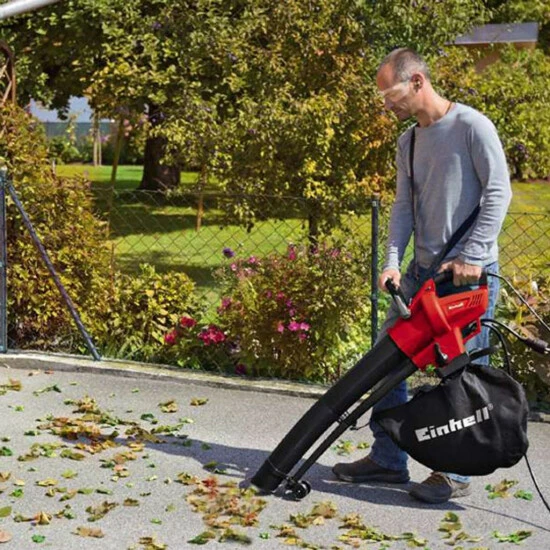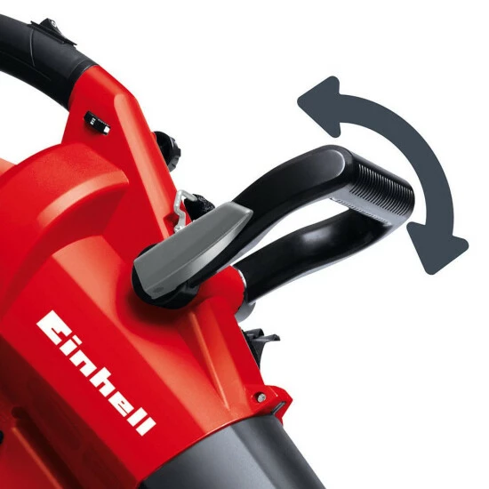 Elektro-Laubsauger GC-EL 2600 E von Einhell Ausstattung: Ein / Ausschalter verstellbarer Tragegurt Reinigungsklappe mit Sicherheitsschalter Großdimensioniertes 2-teiliges Saugrohr verstellbarer Zusatzhandgriff Wahlschalter Saugen / Blasen Elektronische Drehzahlregulierung Anti-Vibrations-Handgriff Parktische Führungsräder Technische Daten: Netzanschluss: 230 V 50 Hz Leistung: 2.600 Watt Blas-Luftstrom: max. 270 km/h Saugleistung: max. 780 m³/h Drehzahl: 6.000 –, 14.000 min-1 Häckselfunktion: 10:1 Fangsackvolumen: ca. 45 Liter Gewicht: 4,2 kg