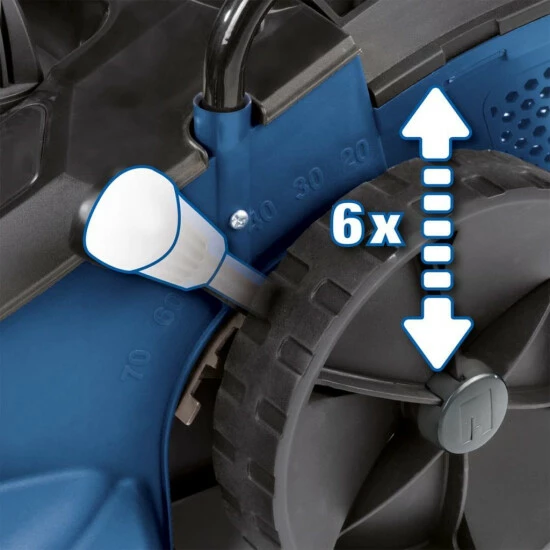 - 6-fache Schnitthöhenverstellung (20-70 mm), zentral