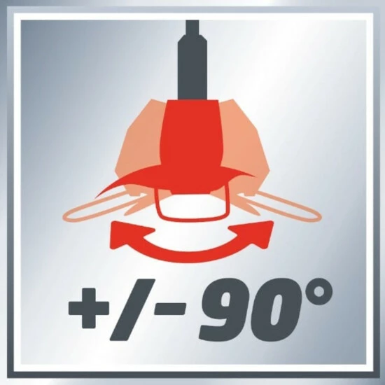 - Motorkopf beidseitig um 90° drehbar zum bequemen Schneiden von Rasenkanten
