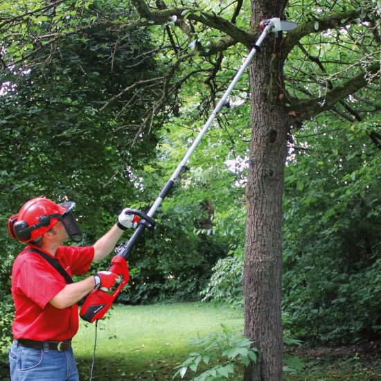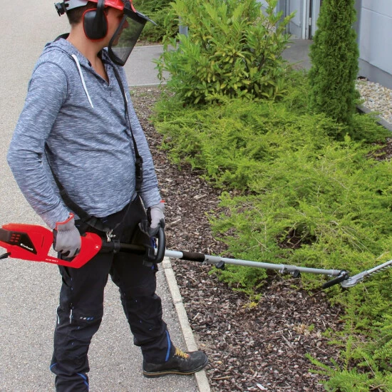 Die elektrische Stab-Heckenschere/Hochentaster GC-HC 9024 T ist ein flexibler 2in1 Allrounder für die Pflege von Büschen, Hecken und Sträuchern. Ob Ordnung ins Grün gebracht werden soll oder Strukturen entstehen sollen: Mit der GC-HC 9024 T ist es ein Leichtes, das Blätter- und Astwerk auf die gewünschte Länge zu kürzen. Die Schneidwinkelverstellung bei der Hochheckenschere und der stufenlos verstellbare Zusatzhandgriff sorgen für ergonomisches und komfortables Arbeiten, auch bei längerem Einsatz. Kombiniert ist die Kraft des elektrischen Hochentasters mit einem OREGON Schwert und Kette. Die automatische Kettenschmierung sorgt für eine unkomplizierte Handhabung. Das Metallgetriebe steht für eine lange Nutzungsdauer. 50 Zentimeter misst die Teleskopverlängerung, so dass bequem auch höhere Hecken- oder Baumpartien erreicht werden können. Schwierige Stellen im Grün zurecht zu stutzen, meistert der Hobbygärtner problemlos durch den drehbaren hinteren Handgriff. Zur leichteren Nutzung verfügt das Elektro-Multitool über einen verstellbaren Tragegurt mit Schnellentriegelung. Für die Lagerung und den Transport ist ein stabiler Köcher für die Heckenschere und den Hochentaster in der Lieferung inbegriffen.