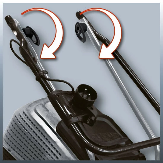 - Klappbarer Führungsholm für geringen Platzbedarf beim Verstauen