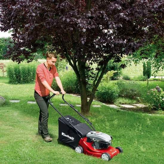 Ausstattung: Textil-Grasfangsack mit FĂŒllstandanzeige; Startseilzug; beidseitig gelagerte Kurbelwelle