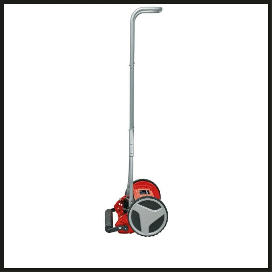 Der Einhell Hand-Rasenmäher GC-HM 400 ist ein robuster, funktionaler Mäher ohne motorischen Antrieb, mit dem sich Rasenflächen bis 250 m² sauber, leise und umweltfreundlich mähen lassen. Die kugelgelagerte Mähspindel ist mit 5 hochwertigen Stahlmessern für 40 cm Schnittbreite ausgerüstet. Die 4-stufige Schnitthöheneinstellung lässt sich von 13 mm bis 37 mm individuell anpassen. Die Kunststoff-Laufwalze hat einen Durchmesser von 46 mm, der manuelle Mäher ist mit rasenschonenden, großflächigen Rädern ausgegstattet. Ein gebogener Führungsholm bietet optimale Ergonomie bei der Arbeit, die Parkposition ermöglicht ein sicheres und einfaches Verstauen des Mähers. Der 27 Liter fassende Grasfangkorb ist abnehmbar und einfach zu entleeren.