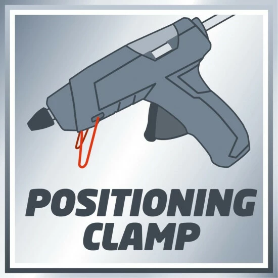 - Bequeme Positionierklemme ermöglicht sicheres Abstellen der Heißklebepistole während der Arbeit