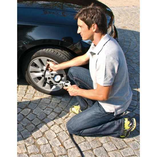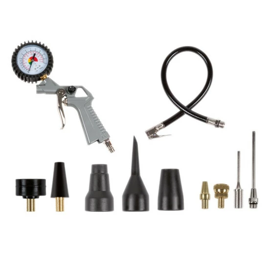 – Inkl. Ausblaspistole, Reifenfüllmesser und 8-tlg. Adapter-Set