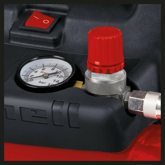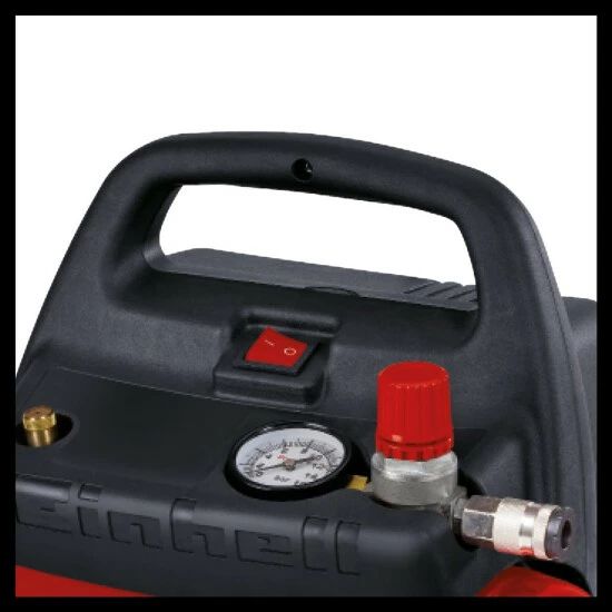Mit dem äußerst mobilen und kompakten Kompressor TC-AC 190/6/8 OF lassen sich zahlreiche einfache Druckluftarbeiten in Haushalt, Garten und Garage oder beim Camping schnell selbst erledigen. Dank Druckluftspeicher und einem Kesselvolumen von 6 Litern lassen sich kleine Arbeiten durchführen, ohne dass der Motor erneut anläuft. Da der Luftverdichter ohne Schmierung auskommt, ist das Gerät ölfrei und wartungsarm. So lässt sich das Gerät bequem in jeder Position transportieren. Der TC-AC 190/6/8 OF Kompressor lässt sich mittels Druckminderer von 0 bis 8 bar variabel auf viele Anwendungen regulieren. Der geregelte Arbeitsdruck wird dabei per Manometer angezeigt und an der Schnellkupplung abgenommen. Dank Sicherheitsventil ist für die Sicherheit des Bedieners bestens gesorgt. Die ergonomische Bauweise und der praktische Handgriff ermöglichen eine optimale Handhabung und den einfachen Transport. Die Standfüße sind mit einer Saugnapffunktion für sicheres Arbeiten ausgestattet und die praktische Kabelaufwicklung sorgt nach getaner Arbeit schnell für Ordnung.