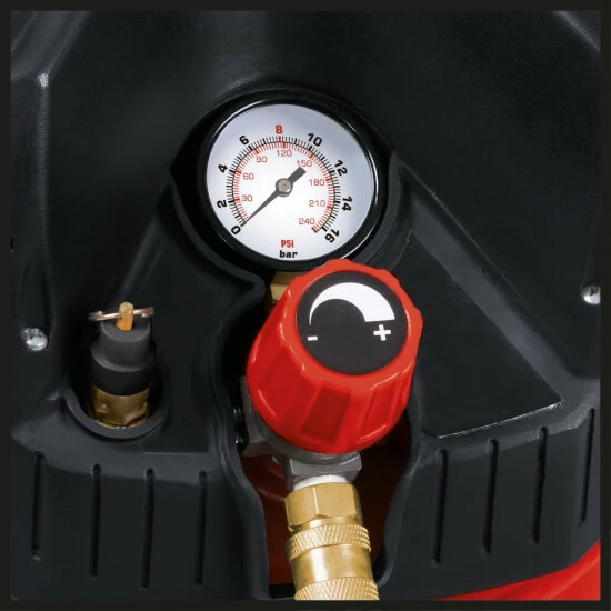 – Manometer und Schnellkupplung für geregelten Arbeitsdruck