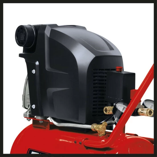 Der Einhell Kompressor TE-AC 270/24/10 ist ein leistungsstarker, robuster Dauerläufer für hohe Anforderungen. Dank hochwertiger Komponenten und Ölschmierung erzielt er eine sehr hohe Laufzeit. Der Ölstand lässt sich bequem über ein Schauglas prüfen. Mittels Druckminderer lässt sich der Arbeitsdruck von bis zu 10 bar auf viele Anwendungen einstellen. Mit 24 Litern Kesselvolumen hält der Kompressor ausreichend Druckluftreserven für viele Anwendungen bereit. Der geregelte Arbeitsdruck des TE-AC 270/24/10 lässt sich bequem am großen Manometer ablesen und über eine Schnellkupplung entnehmen. Für das Arbeiten mit ungeregeltem Kesseldruck ist ebenfalls ein Manometer sowie eine Schnellkupplung vorhanden. Die praktische Entwässerungsschraube zum Ablassen des Kondensats ermöglicht die komfortable Wartung.
