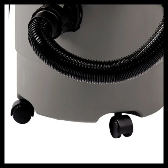 Der Nass-Trockensauger TC-VC 1815 ist ein unentbehrliches Hilfsmittel für tiefgreifende und gründliche Reinigungsaufgaben. Mit 1.250 Watt leistet er bei allen Arten wasserunempfindlicher Oberflächen sorgfältige Dienste und setzt eine Saugleistung von maximal 180 mbar um. Der Schmutz, der Geruch, die Keime und Bakterien sitzen tief im Gewebe. Ein Nass-Trockensauger reinigt im Gegensatz zu reinem Saugen und Wischen tief und gründlich und ist die passende Ergänzung zu haushaltsüblichen Reinigungsgeräten bei starken, hartnäckigen und tiefen Verschmutzungen. Das Innere aller Arten von Kraftfahrzeugen kann mit einem Nass-Trockensauger bis in die Textilspitzen gereinigt werden, Sitze und Himmel gleichermaßen wie die Teppiche und die Verkleidung. Der Nass-Trockensauger verfügt über einen 15 l-Kunststoffbehälter, ein „Leichtgewicht“ und trotzdem stoßfest und einfach zu reinigen. Vier Rollen sorgen für eine gute Mobilität, am Gehäuse ist die Kabelhalterung für das 2,50 m lange Kabel und eine Zubehörhalterung zum sauberen Verstauen des Düsensortiments angebracht. Mit der praktischen Halterung sind die passenden Düsen immer schnell zur Hand. Der Blasanschluss dient dem Ausblasen von schwer zugänglichen Stellen, beispielsweise unter Treppen oder in schwerlich erreichbaren Ecken. Im Lieferumfang enthalten sind ein 1,50 Meter Plastiksaugschlauch mit einem dreiteiligen Verlängerungsrohr, eine Kombidüse für Teppich- und Glattböden und eine Fugendüse sowie ein Schaumstofffilter, ein Filterbeutel und ein Schmutzfangsack.