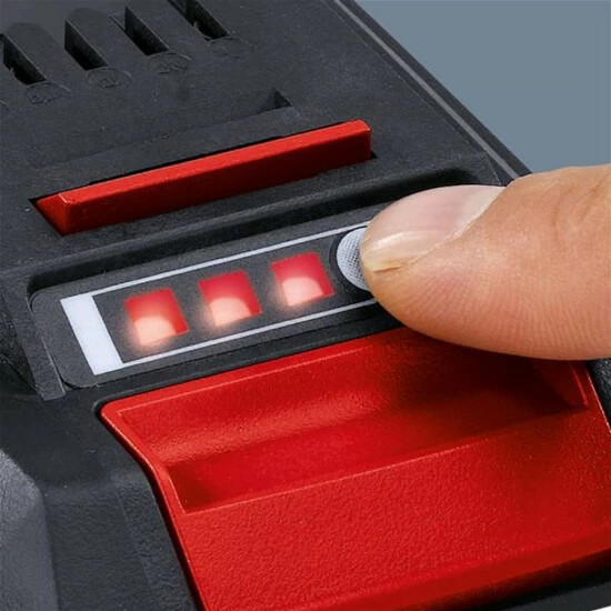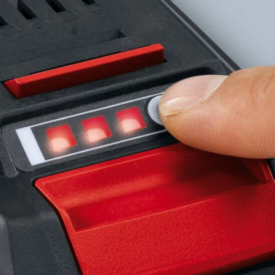 Der Einhell Power X-Change Akku passt in verschiedene Geräte. Mikroprozessortechnologie sorgt für effizienten Schutz gegen Überlastung und Überhitzung. Das intelligente Ladeverfahren erlaubt ein Laden unabhängig von seinem Ladezustand bei gleichzeitig maximaler Langlebigkeit. Die 3-stufige LED-Anzeige zeigt nicht nur den Ladezustand des Akkus, sondern auch extreme Temperaturbedingungen. Das Gehäuse ist stoßgeschützt für den Fall der Fälle, dass das Gerät herunterfällt.