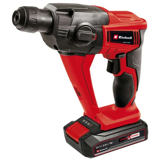 Der Akku-Bohrhammer TE-HD 18 Li Kit (1×2.5 Ah) ist ein robustes und vielseitiges Arbeitstier zum netzunabhängigen Schrauben und Bohren mit zusätzlicher kraftvollen Hammerfunktion. Durch das pneumatische Schlagwerk wird ein sehr guter Vortrieb in Mauerwerk und Beton ermöglicht. Dank der speziellen ergonomischen Griffform mit Softgrip, liegt der Bohrhammer jederzeit komfortabel und sicher in der Hand. Weiteren Bedienkomfort bieten die praktische Quickstop-Funktion gegen unerwünschtes Nachlaufen der Bohrwerkzeuge und das helle LED-Licht, das den Arbeitsbereich optimal ausleuchtet. An der Automatik SDS-Plus-Aufnahme können zudem Standard-Betonbohrer schnell und werkzeuglos gewechselt werden. Das 30 Minuten Schnellladegerät sorgt für ein schnelles Laden des kräftigen 18 Volt Systemakkus, der in vielen weiteren Geräten der Power X-Change Familie betrieben werden kann. Dank Lithium-Ionen Technologie können sich diese Akkus nicht mehr selbst entladen und die Geräte bleiben klein, leicht und handlich. Der Akku verfügt über eine integrierte Kapazitätsanzeige für die schnelle Sichtkontrolle des aktuellen Ladezustands. In der Lieferung inklusive sind ein 2,5 Ah PXC-Akku, ein Schnellladegerät und 5 Bohrer für sofortigen Projektstart. Lieferung erfolgt in E-Box Basic.