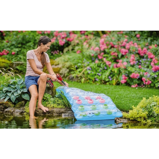 Die Einhell Akku-LuftpumpeAP 18 Li-Solo bietet als Mitglied der Power X-Change-Familie kabellose Freiheit. Sie dient zum Aufpumpen von Schlauchbooten, Luftmatratzen und Freizeitartikeln oder als Werkstattbläser und zum Reinigen von Arbeitsflächen. Mithilfe von zwei Ventiladaptern ist für eine flexible Anwendung gesorgt. Befüllt wird mit 670 l/min und max. 0,05 bar. Der Arretierungsschalter erlaubt ermüdungsfreies Arbeiten, das LED-Licht für optimale Ausleuchtung auch bei schlechten Lichtverhältnissen. Der ergonomische Griff erhöht den Bedienkomfort. Zum Betrieb wird ein 18 Volt-Akku der Power X-Change-Reihe benötigt. Akku und Ladegerät sind separat erhältlich, zum Beispiel als praktisches Starterset von Einhell.