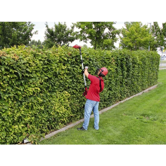 Das Akku-Multifunktionswerkzeug GE-HC 18 Li T ist ein leistungsstarkes Gerät, mit dem sich höher gelegene Äste und hohe Hecken mühelos und stromnetzunabhängig vom Boden aus beschneiden lassen. Dabei sorgt das Qualitätsschwert und die Kette von OREGON für ein sauberes Schnittbild. Automatische Kettenschmierung und der werkzeuglose Kettenwechsel ermöglichen eine einfache Handhabung. Die lasergeschnittenen und diamantgeschliffenen Messer der Heckenschere sorgen für saubere Schnittresultate. Durch die verschiedenen Einstellmöglichkeiten kann das Multitool auf jede Arbeitssituation angepasst werden. Batterie und Ladegerät sind nicht im Lieferumfang enthalten.