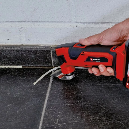 Das Einhell Akku-Multifunktionswerkzeug TC-MG 18 Li-Solo ist ein flexibler und hochwertiger Helfer bei Ausbau-, Renovierungs- oder Sanierungsarbeiten. Dank der umfangreichen Ausstattung gehen Arbeitsschritte wie Sägen, Schleifen oder Schaben mühelos vonstatten. Als Mitglied der Power X-Change-Familie stehen dem Anwender alle Vorteile der hochwertigen Lithium-Ionen-Technologie von Einhell offen. Das Akku-Multifunktionswerkzeug ist hochwertig und ergonomisch konzipiert, sodass die Anwendung in der Praxis eine enorme Erleichterung darstellt. Das Multifunktionswerkzeug ist zudem mit einer schwingungsentkoppelten Batterieaufnahme zur Vibrationsreduzierung ausgestattet. Die magnetische Werkzeugaufnahme ermöglicht einen schnellen, komfortablen Werkzeugwechsel. Die Werkzeugaufnahme ist zudem zwölffach einstellbar. Die Drehzahl-Elektronik ermöglicht material- und anwendungsgerechtes Arbeiten. Das TC-MG 18 Li-Solo arbeitet im Bereich von 22.000 bis 40.000 Schwingungen, womit ein präziser Einsatz ermöglicht wird. Sicheres und angenehmes Arbeiten ermöglicht der Softgrip. Zur Ausstattung gehören eine Dreiecksschleifplatte sowie ein Satz mit neun Stück Schleifpapieren in verschiedenen Körnungen (3*P60/3*P80/3*P120). Im Lieferumfang auch enthalten ist ein Schaber, ein Tauchsägeblatt für Holz und Kunststoff (HCS) und ein Segmentsägeblatt zusätzlich für Weichmetall (HSS). Das TC-MG 18 Li-Solo ist Mitglied der Power X-Change-Familie. Der Vorteil der Akku-Geräte liegt auf der Hand: Störende Kabel, „Stolperfallen“ und unerwünschte Ablenkung durch einen begrenzten Bewegungsfreiraum gehören mit der neuen, leistungsstarken und langlebigen Generation der Einhell-Akkugeräte der Vergangenheit an. Die Akkus mit den hochwertigen Lithium-Ionen-Akkuzellen können bei allen Mitgliedern der Power X-Change-Familie angewendet werden. Die Lieferung erfolgt ohne Akku und ohne Ladegerät, diese sind separat erhältlich.
