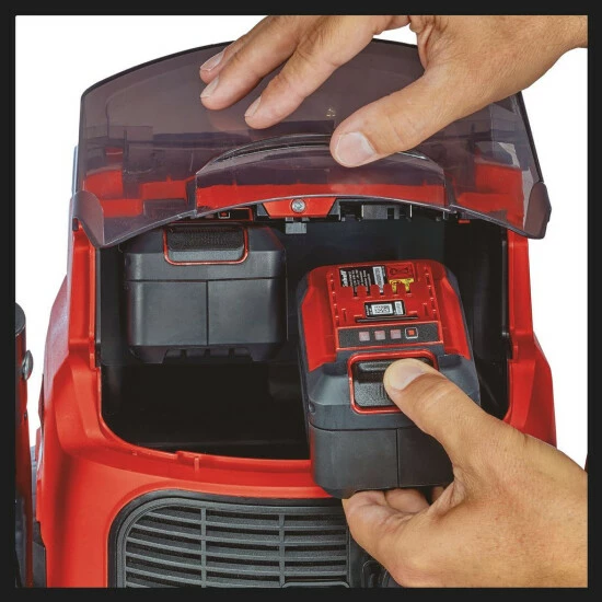 Der Einhell Akku-Nass-Trockensauger TE-VC 36/30 Li S-Solo ist Mitglied der Power X-Change-Familie. Eine optimale Akku-Nutzung erfolgt durch zwei Geschwindigkeiten: ECO und BOOST. Robust gefertigt ist der 30 l-Edelstahlbehälter ebenso wie das Teleskoprohr (Ø 36mm) aus Edelstahl. Praktisch ist die Anwendung dank der Zubehörhalterung zum sauberen Verstauen und der Wasserablassschraube zum Ablassen des eingesaugten Wassers. Zum Ausblasen schwer zugänglicher Stellen dient der Blasanschluss. Große Räder und Rollen machen den Transport einfach. Zum Lieferumfang gehören ein hochbelastbarer Saugschlauch (Ø 36 mm, 2,5 m Länge) und die große Kombidüse für Teppich- und Glattböden. Separat erhältlich sind Akku und Ladegerät.