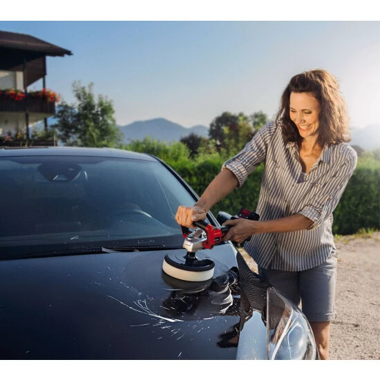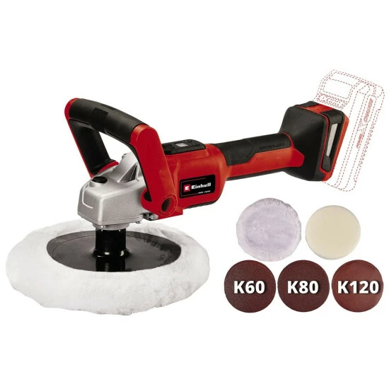 Die Einhell Akku-Polier-/ SchleifmaschineCP 18/180 Li E-Solo ist Mitglied der Power X-Change-Familie. Angetrieben wird sie vom langlebigen Brushless Motor. Polieren und Schleifen mit nur einem Gerät: Ein großer Polierteller mit 180mm sorgt für zügiges Arbeiten. Dank der elektronischen Drehzahlregulierung über LCD-Display ist angenehmes Arbeiten ebenso möglich wie mit dem ergonomischen Griff für optimalen Halt und kontrollierte Führung sowie der schlanken Bauform mit Softgrip. Die Mikro-Kletthaftung erlaubt schnellen Wechsel der Aufsätze. Die Spindelarretierung dient dem problemlosen Befestigen des Poliertellers. Die Lieferung erfolgt ohne Akku und ohne Ladegerät. Empfohlen wird für optimale Ergebnisse der 2,5 Ah Akku und größer.