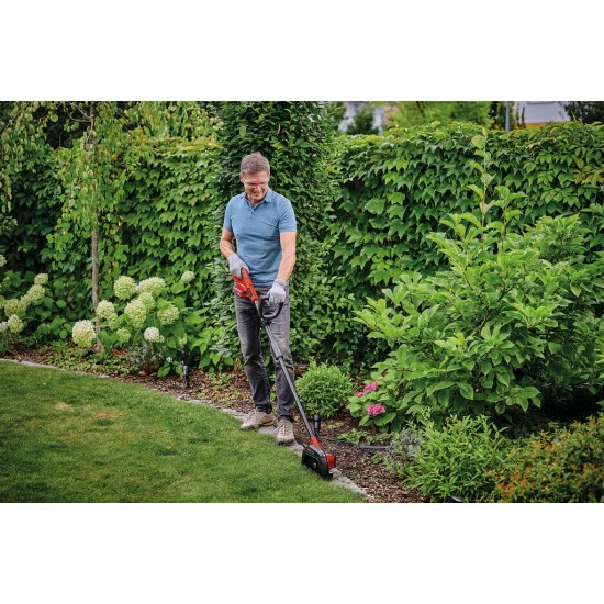 Der Einhell Akku-Rasenkantenschneider GE-LE 18/190 Li-Solo gehört zur cleveren Power X-Change-Familie: Die leistungsstarken Lithium-Ionen-Akkus können grenzenlos flexibel innerhalb der Systemfamilie kombiniert werden. Die 3-stufige Tiefeneinstellung sorgt für präzise Ergebnisse von 36.5 mm bis 45 mm. Das beidseitig schneidende Messer liefert perfekte und akkurate Kantenschnitte, dabei ermöglichen die Laufrollen vorne und hinten exakten Arbeitsfortschritt. Mit der Messerschutzkappe ist ein Schutzmechanismus für den Einsatz integriert. Außerdem sorgt der verstellbare Zusatzhandgriff für präzises und sicheres Führen des Akku-Rasenkantenschneiders. Der Split Schaft bietet einen einfachen Transport und eine platzsparende Aufbewahrung. Zum Betrieb ist 1x 18 Volt Power X-Change-Akku nötig. Die Lieferung erfolgt ohne Akku und Ladegerät, diese sind separat erhältlich.