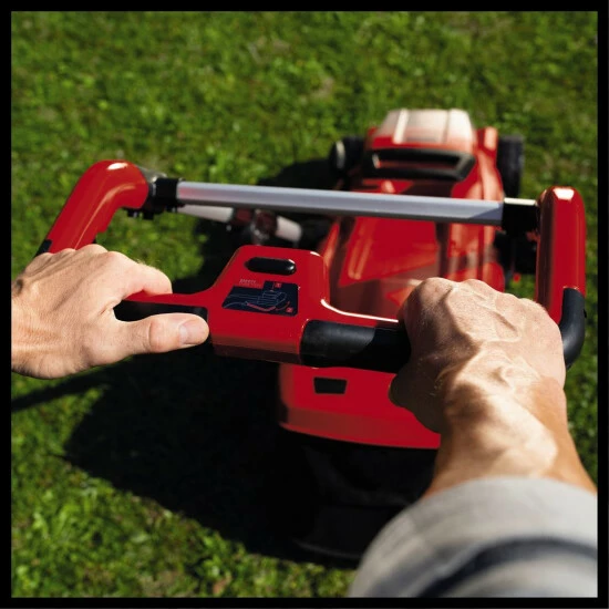 Der Einhell Akku-Rasenmäher GE-CM 36/37 Li bietet kabellose Freiheit bei der Rasenpflege. Die beiden 3,0Ah-PXC-Akkus mit 3 LED-Füllstandsanzeige sind in allen Geräten der Systemreihe verwendbar. Die Schnitthöhe ist in sechs Stufen von 25 – 75 mm einstellbar, die Schnittbreite beträgt 37 cm. Der integrierte Rasenkamm ermöglicht randnahes Mähen. Ergonomisch geformt ist der Griffbereich. Der Aluminium-Führungsholm ist leicht, stabil konzipiert, höhenverstellbar und klappbar. Der Tragegriff sorgt für einfachen Transport. Der 45 l-Grasfangkorb ist mit einer Füllstandsanzeige versehen. Der Highwheeler hat rasenschonende, großflächige Räder. Zum Lieferumfang gehören die Akkus und zwei System-Schnellladegeräte