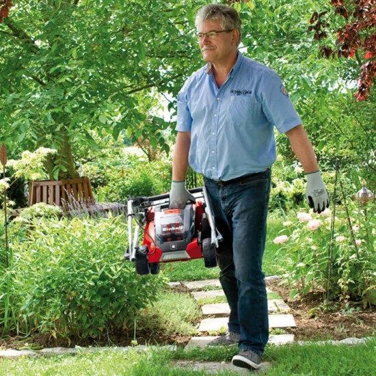 Der Akku-Rasenmäher GE-CM 36 Li ist ein sehr hochwertiges, zuverlässiges und äußerst leistungsstarkes Gerät für die kabellose Pflege mittlerer Rasenflächen. Durch das neue Power X-Change Batteriesystem von Einhell verfügt der Rasenmäher über zwei starke 18 V Akkus mit 3,0 Ah, für ausgedehnte Einsätze ohne lästiges Stromkabel. Die sechsstufige zentrale Schnitthöhenverstellung erlaubt die einfache, individuelle Einstellung der Schnitthöhe.