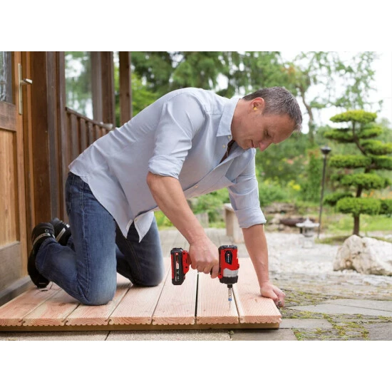Der Einhell Akku-Schlagschrauber TP-CI 18 Li Brushless-solo ist ein leistungsstarkes Mitglied der Einhell Power X-Change Familie mit allen Vorteilen und Einsatzmöglichkeiten der ausgefeilten Lithium-Ionen-Technologie. Alle Akkus sowie Ladegeräte der Linie können bei dem Schlagschrauber TP-CI 18 Li Brushless-solo verwendet werden. Darüber hinaus bietet der bürstenlose Motor mehr Leistung und eine längere Laufzeit als ein herkömmlicher Kohlebürsten-Motor. Der Verschleiß durch mechanischen Abrieb entfällt beim bürstenlosen Akku-Schlagschrauber. Das Eindrehen von großen und langen Schrauben ist mit dem Schlagschrauber von Einhell ein müheloses Unterfangen. Der Schlagschrauber verfügt über eine 1/4″ (6,35 mm) Innensechskant-Werkzeugaufnahme. Die fein dosierbare Drehzahlregelelektronik kann individuell auf das zu bearbeitende Material abgestimmt werden, so dass das Material sowie der Schlagschrauber selbst nicht überansprucht werden. Inbesondere weiche und empfindliche Materialen können gefühlvoll bearbeitet werden. Die kurze, leichte Bauweise schont die Kräfte des Anwenders, die ergonomischen Softgripflächen bieten einen bequemen und festen Halt. Die Lieferung erfolgt ohne Akku und ohne Ladegerät. Die Akkus und Ladegeräte der Power X-Change Familie sind separat erhältlich.