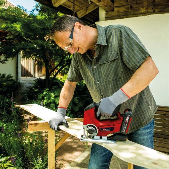 Die Akku-Stichsäge TE-JS 18 Li – Solo ist ein kraftvolles Gerät für vielseitige Sägearbeiten. Der zuschaltbare Pendelhub sowie die hohe Laufruhe ermöglichen schnelle, präzise Schnitte. Die werkzeuglose Universal-Sägeblattaufnahme spart kostbare Zeit, während die integrierte Kunststoff-Gleiteinlage empfindliche Werkstücke schont.