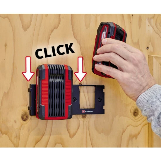 Die Einhell Power X-Change Akku-Wandhalterung ist kompatibel mit allen Power X-Change Akkus von Einhell. Durch den Vorteil einer cleveren Baustein-Bauweise ist die Akku-Wandhalterung endlos erweiterbar für die Lagerung unendlich vieler Akkus. Resultierend daraus bietet die Akku-Wandhalterung eine maximale Flexibilität für jede Werkstatt. Eine einfache Montage wird ermöglicht durch eine Nut- und Federverbindung. Die Einrastfunktion der Akku-Wandhalterung ermöglicht einen sicheren Halt, auch bei einer Überkopfmontage. Infolgedessen kann diese auch in Wohnmobilen oder Autos sicher montiert werden. Der Kauf des Sets beinhaltet vier Schrauben für die Montage an einer Holzwand, sowie weitere vier Dübel für die Befestigung an Beton.