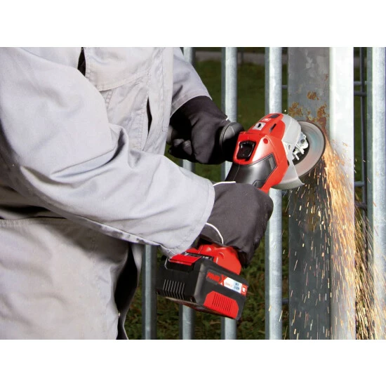 Der Einhell Akku-Winkelschleifer TE-AG 18/115 Li ist als leichtester Akku-Winkelschleifer seiner Klasse der unverzichtbare Helfer für vielseitige Schleif- und Trennarbeiten. Mittels eines robusten Aluminium-Getriebegehäuses und durch die Entkopplung von Motor und Getriebe wird eine sehr hohe Laufruhe ermöglicht. Dank Softstart und Wiederanlaufschutz läuft der Akku-Winkelschleifer sanft an und sorgt für eine erhöhte Anwendersicherheit. Die schlanke Bauform mit ergonomischem Softgrip und der in drei Positionen flexibel montierbare Zusatzhandgriff ermöglichen eine komfortable Handhabung des Gerätes. Die geänderte Luftführung sorgt für eine optimale Kühlung des Gerätes und getriebeschonendes Arbeiten. Der Scheibenschutz lässt sich dank Schnellverstellung im Handumdrehen an jede Aufgabe anpassen. Der Überlastschutz sorgt dabei für erhöhte Sicherheit und Langlebigkeit. Dank des kraftvollen und leichten 3,0 Ah Plus Power X-Change Systemakkus liegt der kabellose Winkelschleifer jederzeit optimal in der Hand. Die innovative Lithium-Ionen-Technologie sorgt für nahezu keine Selbstenladung der Akkus, an der praktischen Akku-Kapazitätsanzeige ist der aktuelle Ladezustand jederzeit abrufbar. Durch das mitgelieferte Schnellladegerät wird der 3,0 Ah Akku innerhalb von 60 min aufgeladen. Der Akku-Winkelschleifer wird mit einem 3,0 Ah Plus Akku und Schnellladegerät, allerdings ohne Trennscheibe, in einem robusten Transport- und Aufbewahrungskoffer geliefert. Für die größtmögliche Flexibilität kann dieses Gerät mit jedem Akku der Power X-Change Familie betrieben werden.