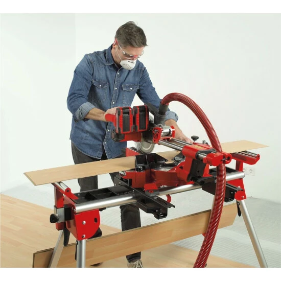 – Bis 45° nach links neigbarer Sägekopf für Gehrungsschnitte