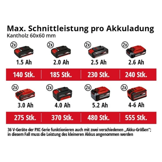 Die Einhell Akku-Zug-Kapp-Gehrungssäge TE-SM 36/210 Li – Solo kann flexibel bei Arbeiten rund ums Holz eingesetzt werden, um Gehrungen zu schneiden, zu kappen oder auch Parkett zu kürzen. Die Akku-Version der Säge bringt einen unbegrenzten Aktionsradius: keine störende Kabel bei der Arbeit, kein Aufwickeln nach der Arbeit. Als Mitglied der Power X-Change-Familie können alle Akkus der leistungsstarken Lithium-Ionen-Reihe mit der Zug-Kapp-Gehrungssäge kombiniert werden. Für optimale Ergebnisse wird mindestens ein 2,5 Ah Plus-Akku der PXC-Reihe empfohlen, dieser ist separat erhältlich. Die Einhell Zug-Kapp-Gehrungssäge ist mit einer leichtgängigen Zugfunktion ausgestattet, die auch für breitere Werkstücke geeignet ist. Die X-Tend Werkstückauflagen können einhändig und werkzeuglos verstellt werden. Die Spannvorrichtung dient der sicheren Fixierung des Werkstückes. Der Drehtisch umfasst eine präzise Winkeleinstellung für Schrägschnitte. Zudem ist der Sägekopf für Gehrungsschnitte bis 45° nach links neigbar. Die leistungsstarke Säge ist mit einem hochwertigen HM-Präzisionssägeblatt ausgerüstet, das extra für Akku-Sägen entwickelt wurde und ein feines Schnittbild ermöglicht. Ein Schnittlinien-Laser und ein LED-Licht sorgen für schnelle, akkurate und darüber hinaus sichere Schnitte. Zudem verfügt die Akku-Zug-Kapp-Gehrungssäge über einen Spänefangsack oder einen Adapter zur Absaugung, um sowohl den Arbeitsplatz und die Luft sauber zu halten.