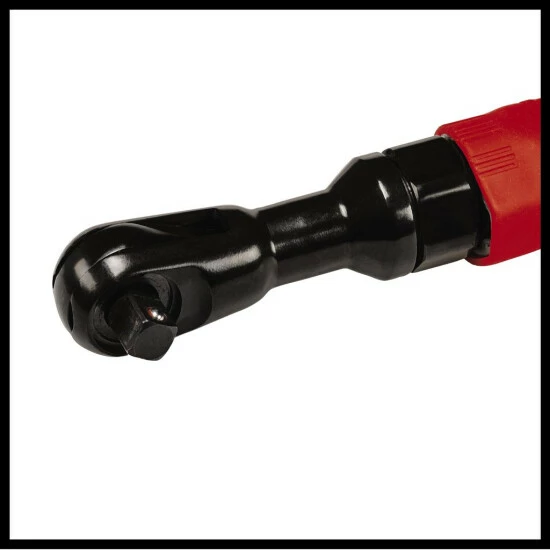 Der Einhell Druckluft-Ratschenschrauber TC-PR 68 ist ein handlicher und leistungsstarker Helfer, wenn Verschraubungen befestigt oder gelöst werden sollen. Der Ratschenschrauber verfügt über ein maximales Drehmoment von 68 Nm. Der rutschfeste Griff ermöglicht ein sicheres und angenehmes Arbeiten. Beste Performance bietet der Druckluft-Schrauber ab einem Schlauch-Innendurchmesser von 9 Millimeter. Dabei sind am Ratschenkopf sowohl Rechts- als auch Linkslauf einstellbar. Neben 7 Steckschlüsseln in den Größen 9/10/11/13/14/17/19 Millimeter, einer Verlängerung und einem Kardangelenk ist der Ratschenschrauber mit einem Stecknippel sowie einem Ölfläschchen ausgestattet. Die Lieferung erfolgt im praktischen Transport- und Aufbewahrungskoffer.