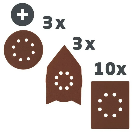 – Verschiedene Schleifteller (Exzenter, Delta, Rechteck)